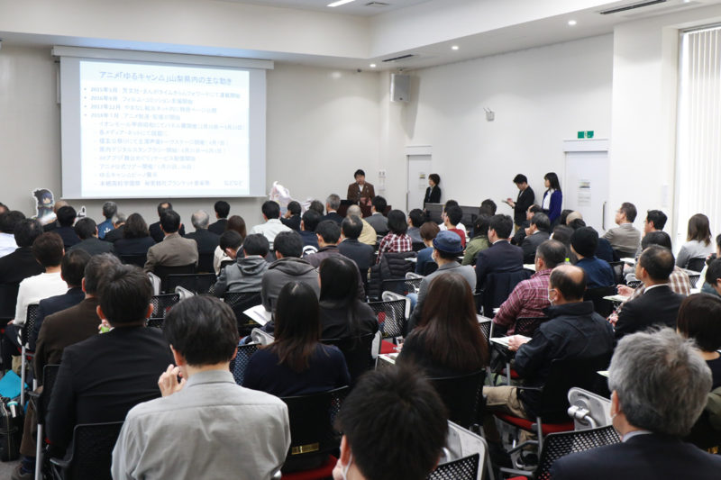 これは、山梨県が舞台の人気アニメ「ゆるキャン△」の放送以降、身延町を中心とする作品の舞台となった地域に、連日多くのファンが観光客として訪れていることから、アニメが地域にもたらす効果を分析し、地域に根付いたコンテンツツーリズムの仕組みづくりを考えることを目的に開催されました。