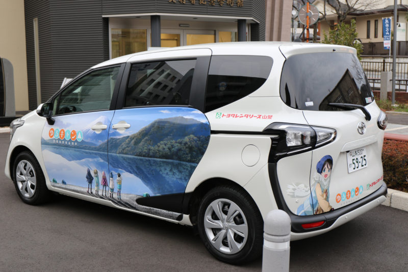 なお、会場の外では、アニメに登場したモデル地をパネルで紹介するコーナーが設けられたほか、株式会社トヨタレンタリース山梨の「ゆるキャン△特別仕様車」が一般公開されました。