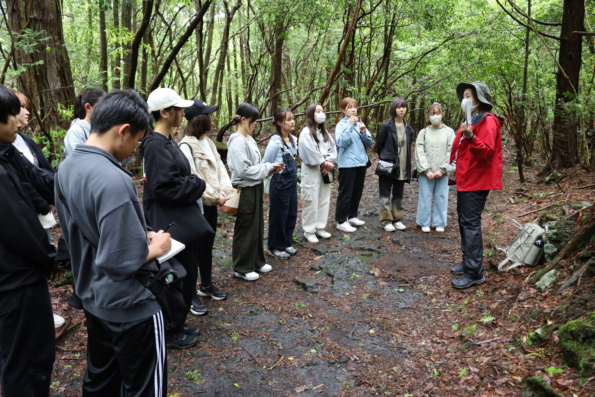 1日目は樹海ガイドツアーに参加した後,河口湖音楽と森の美術館や忍野八海を視察し、夜はキャリアを考えるワークショップを行いました。2日目は新倉山浅間公園や旅の駅kawaguchiko base、フォレストアドベンチャー・フジなどを視察しました。