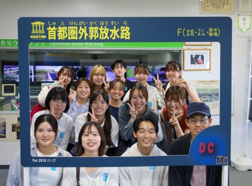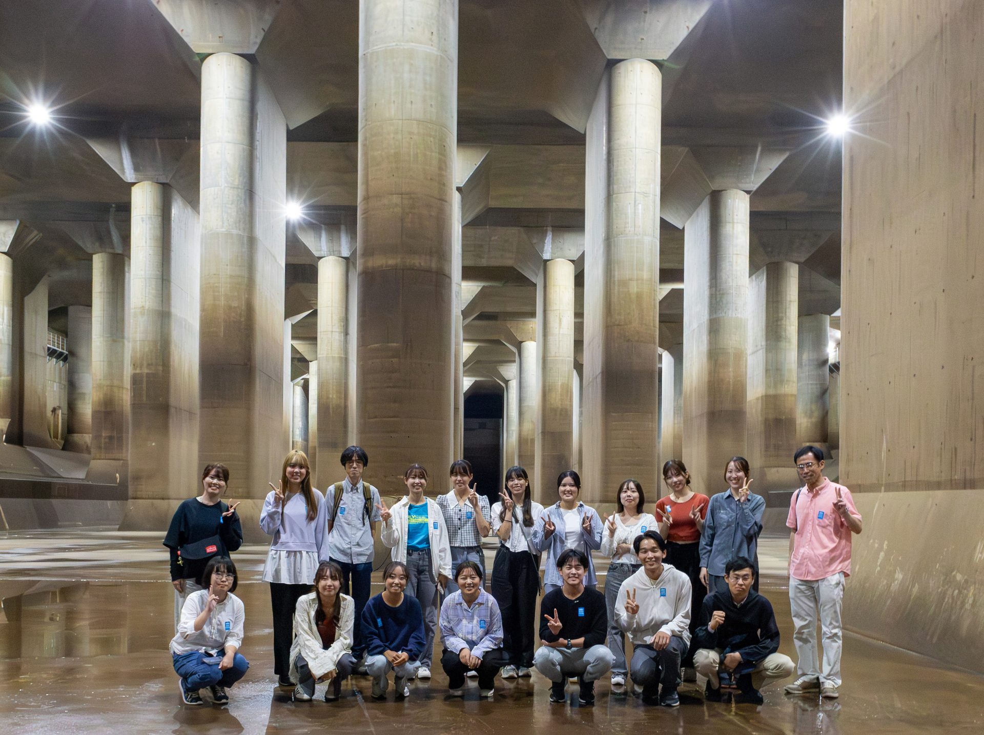 まず、埼玉県を代表する観光資源であり、重要伝統的建造物群保存地区に選定されている川越市の蔵造りの町並みを視察し、歴史文化資源を活かした地域づくりのあり方について学びました。次に、春日部市にある首都圏外郭放水路の見学ツアーに参加し、インフラ施設を観光資源として活用するインフラツーリズムの可能性について学びました。